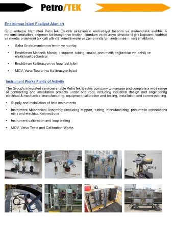 mekanik imalatları, ekipman kalibrasyon ve testleri , kurulum ve devreye alma dahil çok kapsamlı taahhüt