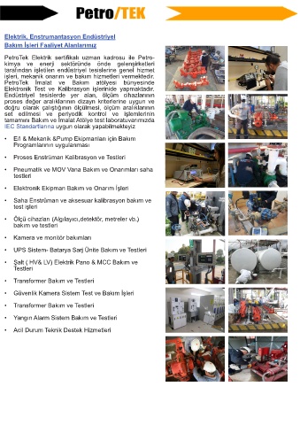• E/I & Mekanik &Pump Ekipmanları için Bakım